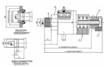 Bush bearing enabling thermal expansion. Balanced face seal lapped to optical flatness, available in MONO FLOW. DUO FLOW with fixed siphon and rotating siphon.